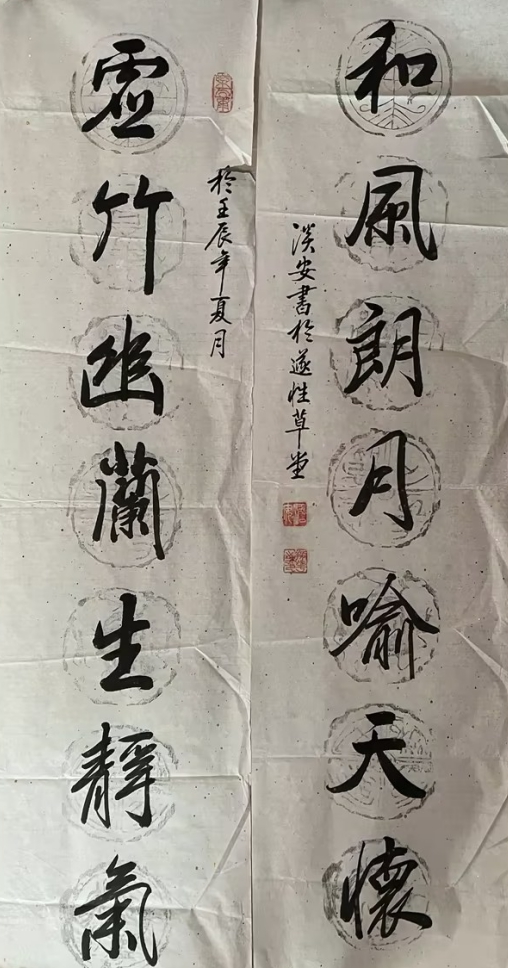 朱强华 草书(对联,虚竹和风) 130×32×2 cm