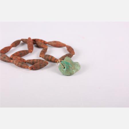 马家窑文化马厂类型线纹陶珠、绿松石串饰长:54cm 距今约4350年-4000年