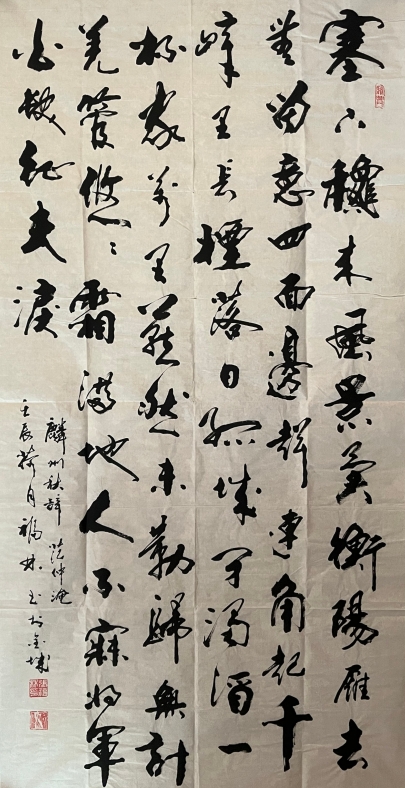 翟忠 书法(杜甫诗二首) 177×70 cm