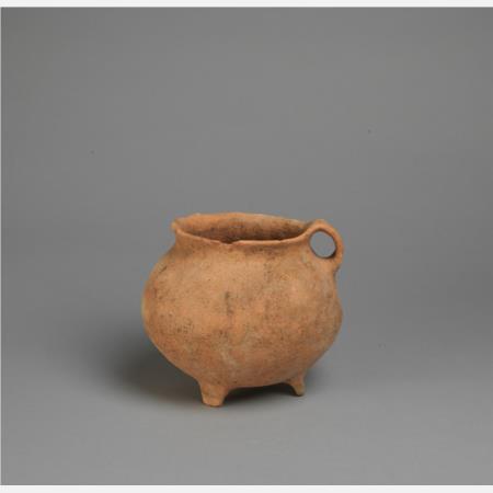 仰韶文化三实足单耳彩陶罐,高:14.2cm,腹围:50.24cm,仰韶文化,是指黄河中游地区一种重要的新石器时代彩陶文化,其持续时间大约在公元前5000年至前3000年(即距今约7000年至5000年,持续时长2000年左右),分布在整个黄河中游从甘肃省到河南省之间。因1921年首次在河南省三门峡市渑池县仰韶村发现,故按照考古惯例,将此文化称之为仰韶文化。其以渭、汾、洛诸黄河支流汇集的关中豫西晋南为中心,北到长城沿线及河套地区,南达鄂西北,东至豫东一带,西到甘、青接壤地带。