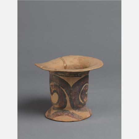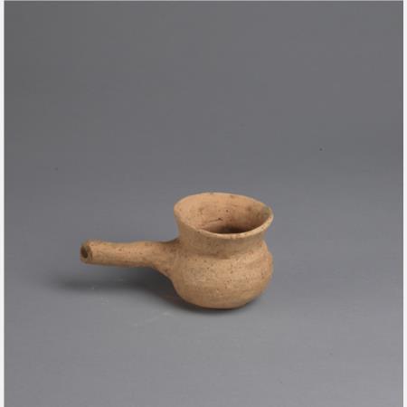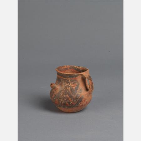 齐家文化带流彩陶罐,高:8cm,直径:8cm,齐家文化,是以甘肃为中心的新石器时代晚期文化,并且已经进入铜石并用阶段,名称来自其主要遗址甘肃广河县齐家坪遗址。 是分布在河西走廊地区的一支重要的早期青铜时代的考古学文化。