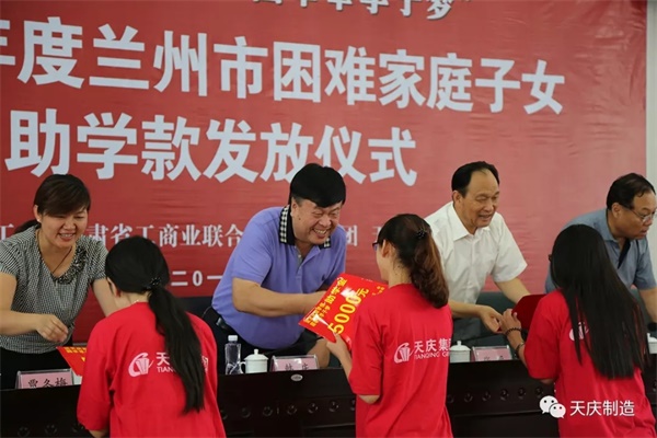 此外,韩庆董事长深知教育是扶贫的根本途径,他投入善款在岷县、皋兰、天水、陇南等地援建五所天庆慈爱学校,建设了一所中学及十所幼儿园。并提出开展“送天庆助学情、圆莘莘学子梦”系列助学活动,通过帮扶贫困大学生,带动贫困家庭脱贫发展,该项助学活动开展十二年来累计投入四千余万元,连续性资助我省困难家庭近3000名学子完成大学学业。