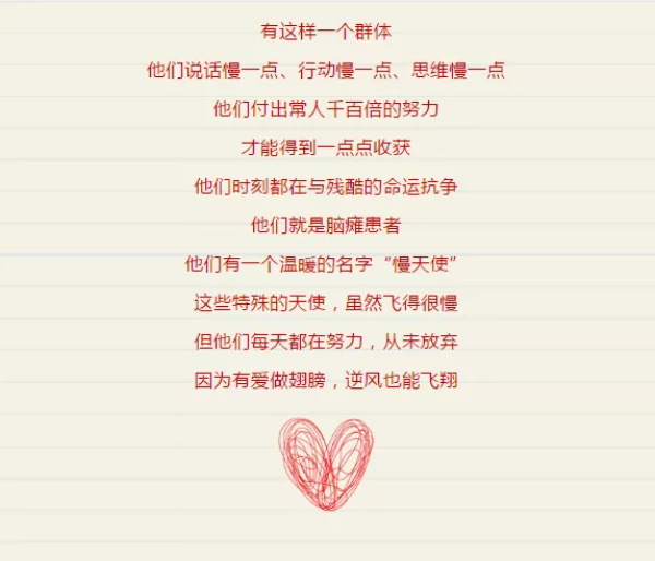 据统计,中国现有600多万脑瘫患者,其中12岁以下的脑瘫儿童有178万人,每年新增脑瘫病例4~5万人。此次公益活动的初衷是希望“慢天使”能够积极融入社会,让他们在温馨、欢乐的活动中体会到社会关爱,增强克服困难的信心。