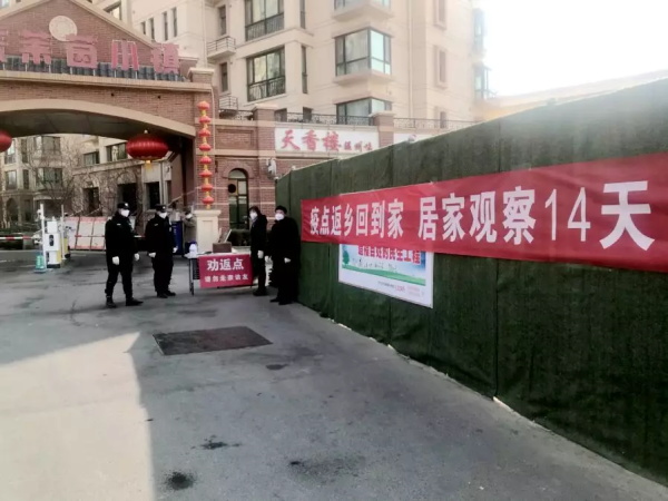 天庆物业广泛宣传“非必要,不外出”理念,号召广大业主尽量减少外出频次,出行时必须佩戴口罩,临时关闭院区次出入口,仅留主出入口并重点进行管控,劝退春节拜年人员,业主进入院区逐个测量体温,在确保无发烧症状的人员方可进入,进出车辆严格进行全面消毒,确保降低传播风险。