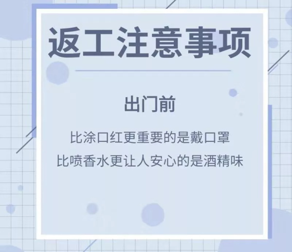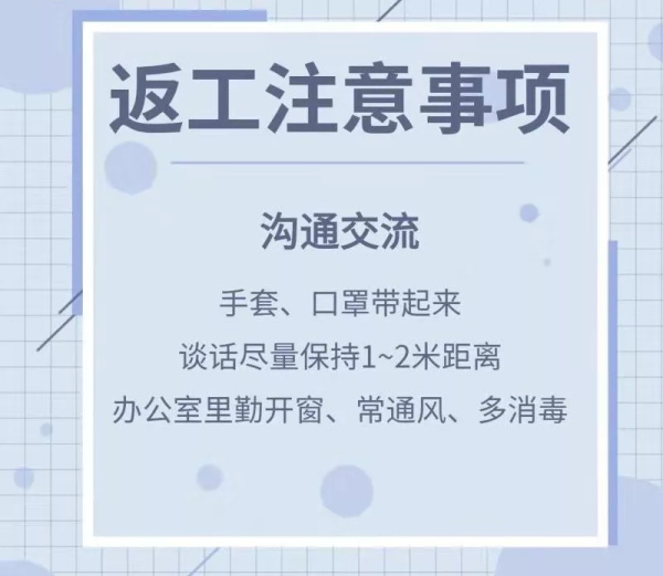 近期,大家将陆续回归工作岗位,然而防控疫情的鏖战正在紧要关头,根据集团公司领导安排部署,营销管理部职能部门及各项目案场防疫手册要求在2月16日前完成,针对如何沟通开会、如何接待客户等事宜的执行及流程做好规定。只有你我共同的努力和参与,朝着一个方向前进,从每个细节处“严防死守”,做好个人及家人的卫生防护,才能建设安全、健康的工作环境。复工时刻,现为伙伴们整理出《天庆集团营销中心防疫行为规范及复工通知安排》,希望伙伴们可以仔细阅读,提前做好准备,为健康防疫打好安全基础。