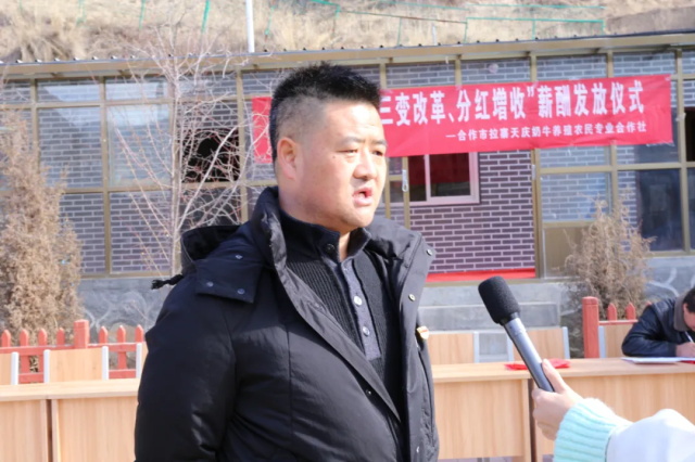 分红现场充满欢声笑语,村民幸福的笑容洋溢于表。2016年7月,由天庆集团出资150万元捐建的天庆香拉奶牛场在香拉村奠基开建,为当地村民点燃了脱贫致富的希望之火,同年11月,随着第一批奶牛入栏,天庆造血式精准扶贫项目在这里生根发芽,扶贫车间正式运转。2021年的今天,以奶牛场为平台推行的三变改革成效显现,因其设立的共济帮扶基金惠泽全村,19名贫困大学生顺利完成学业,香拉村147户整村脱贫,奶牛场先后荣获合作市脱贫攻坚奉献奖合作市脱贫攻坚奋进奖,成为合作市农村三变改革示范点、脱贫攻坚巩固提升工程的代表,村民变股民,脱贫不返贫,现金分红,村民获得了在家门口的额外收益。
