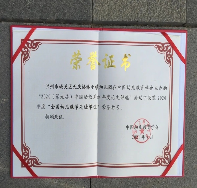 天庆格林小镇幼儿园连续三年蝉联“中国幼教系统年度评选活动——全国幼儿教学先进单位”荣誉称号。