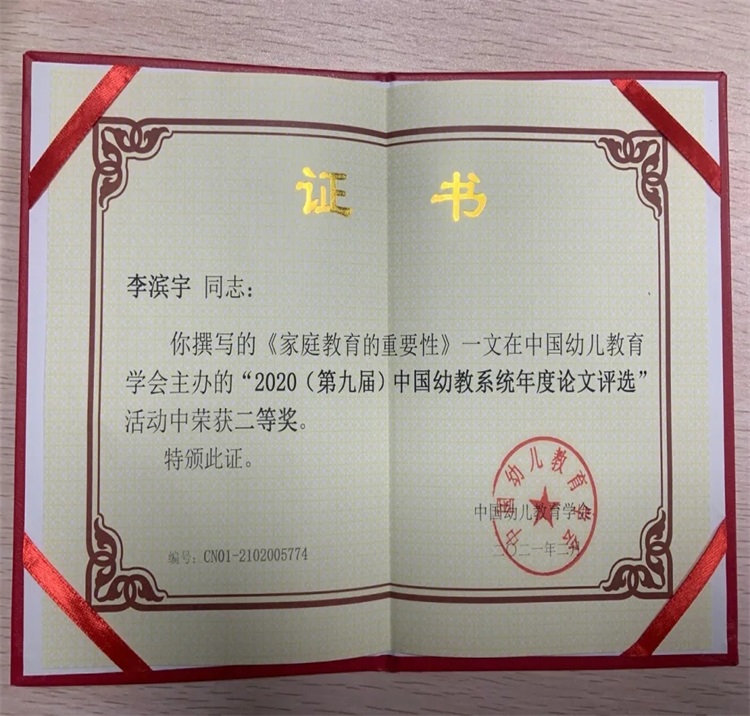 近日,天庆格林小镇幼儿园在“中国幼教系统年度评选活动中,获评“全国幼儿教学先进单位”,天庆格林小镇幼儿园园长李滨宇论文《家庭教育的重要性》荣获二等奖。