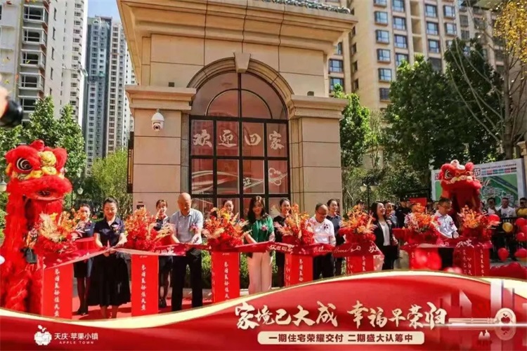 天庆集团公司领导、天水分公司领导以及业主代表一起为天庆苹果小镇一期交房剪彩。