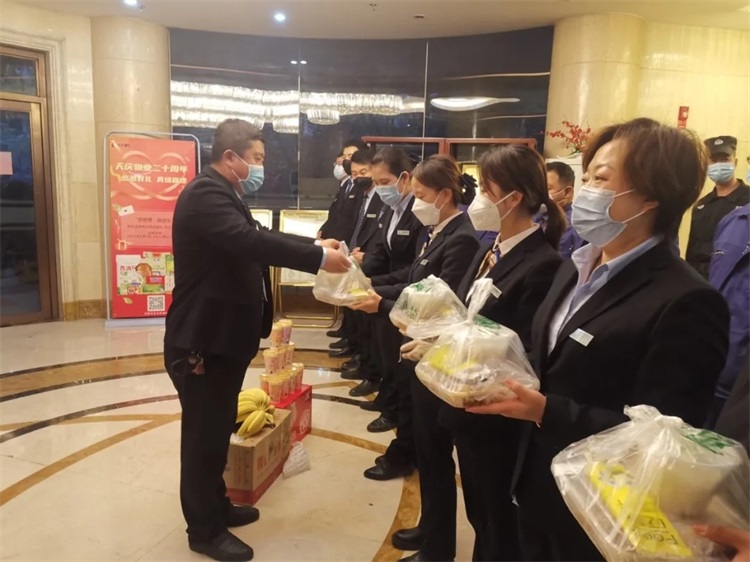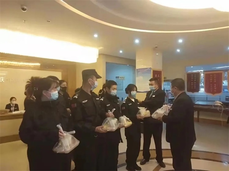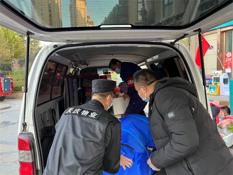 集团公司捐赠物资的同时,为了消除物业等一线防疫人员的后顾之忧,积极协调各方资源,为他们解决三餐及一线防疫生活所需,让他们全身心投入到疫情防控阻击战中。