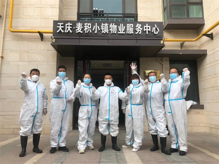 像他们一样的物业抗疫人员在麦积小镇物业团队还有很多,他们都坚守在防疫一线,穿上防护服、戴上口罩、手套,他们被汗水浸透,脸上、手上全留下了丑丑的痕迹……他们顾不上吃饭,自觉减少喝水,只为把上卫生间的时间都节省出来赶紧工作。每个人都像上了发条一样,高速运转,工作虽然艰辛,但他们仍然奔赴在抗疫的道路上,因为他们知道曙光不远了,就在前方。