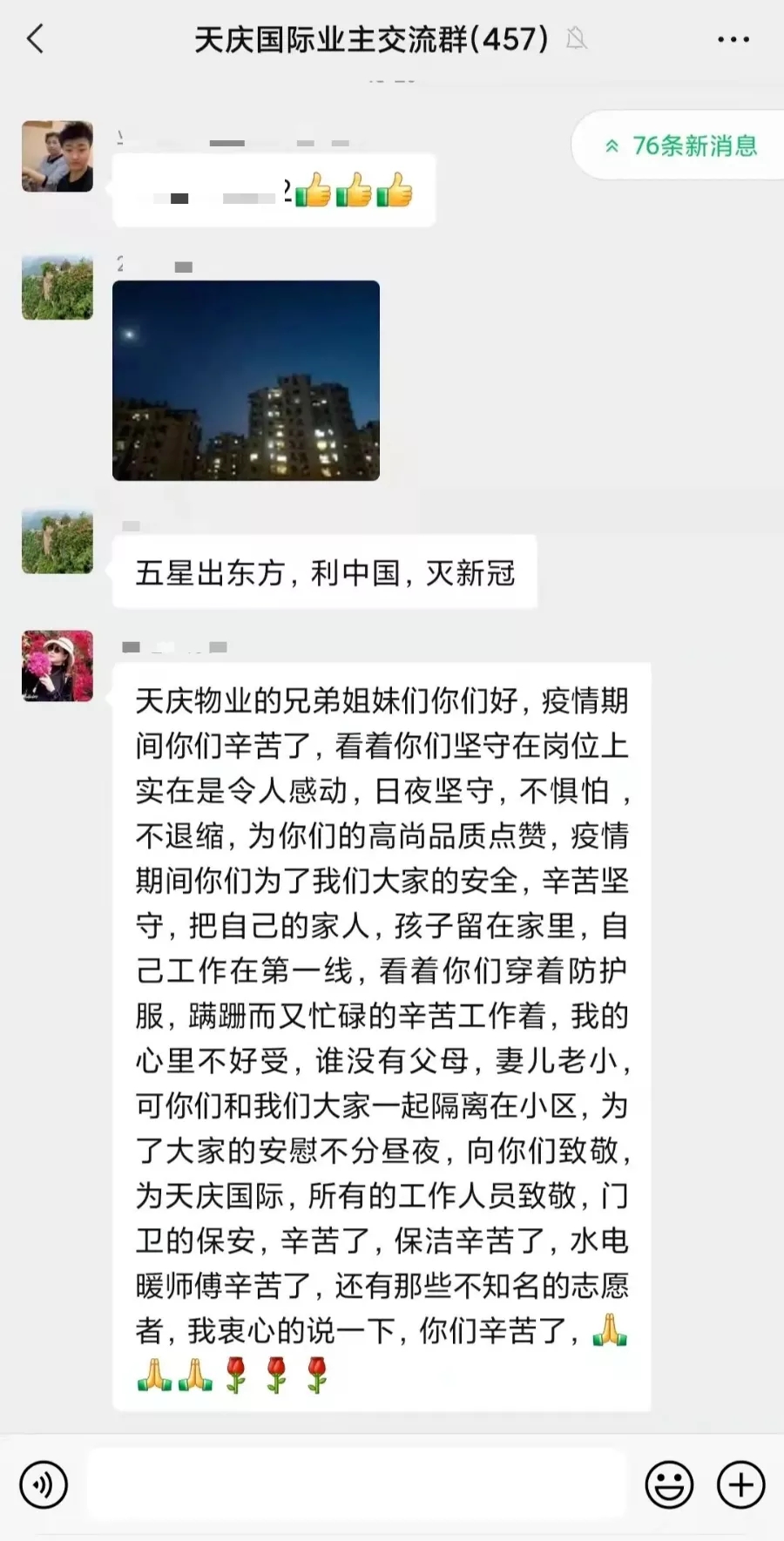 疫情当前,没有人是一座孤岛,有人冲刺火线,也有人默默撒下温暖,总有一些瞬间,在天庆物业,让我们感动而心生力量,总有一些光束,会穿过阴霾,支撑我们熬过黑暗的长夜。