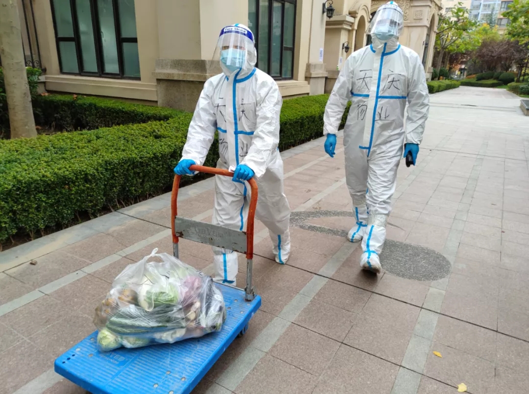 10月31日下午四点,天水天庆国际小区16号楼发现有确诊病例,随即16号楼全面封闭,楼上50多户业主的日常服务需求就落在了天庆国际物业主管徐浩和电梯维修工文亚刚的肩上。