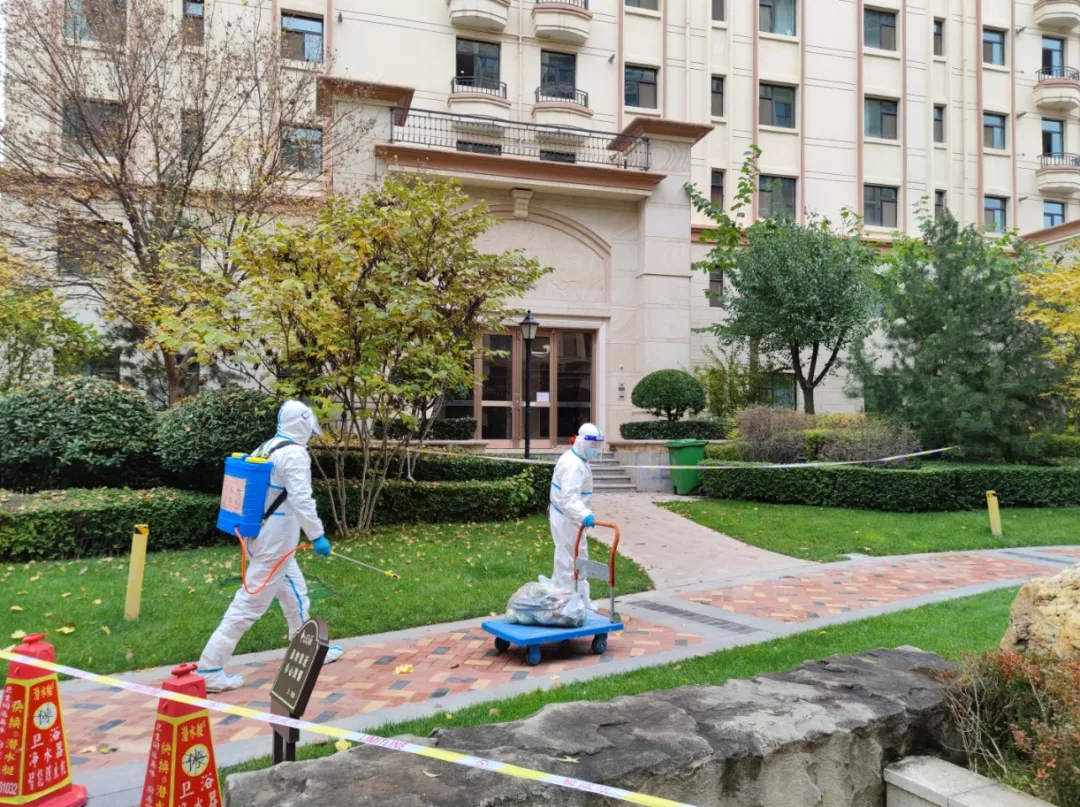 16号楼封闭管理期间,他们除了核酸检测定点支援之外,整个疫情期间,他们一直负责着16号楼的公共区域的消杀工作,更换电梯用纸、一层一户的清洁消毒、定时清理居家隔离业主在楼道的生活垃圾。同时为业主解决临时救急问题,一会帮患病的业主去取药,一会又要给孤寡老人、孕妇送菜,他们超强的跑腿能力,一系列举动让业主们直呼太暖心,彰显了一名物业人的坚定与执着。