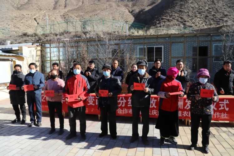 分红发放现场充满欢乐气氛,村民幸福的笑容洋溢于表。2016年7月,由天庆集团出资150万元捐建的天庆香拉奶牛场在香拉村奠基开建,为当地村民点燃了脱贫致富的希望之火,同年11月,随着第一批奶牛入栏,天庆造血式精准扶贫项目在这里生根发芽,扶贫车间正式运转。天庆集团以奶牛场为平台,连续六年积极发展乡村扶贫,以阶段式完成单向帮扶到自给自足的转变,第一阶段设立共济帮扶基金,帮助全村大学生完成学业,帮助建档立卡贫困户获得生活保障,实现了香拉村147户整村脱贫。第二阶段以三变改革形式让村民每年分红,以养殖技能、勤劳双手,巩固提升了脱贫成果。奶牛场先后荣获合作市脱贫攻坚奉献奖、合作市脱贫攻坚奋进奖,成为合作市农村三变改革示范点、脱贫攻坚巩固提升工程的代表,村民变股民,脱贫不返贫,现金分红,村民获得了在家门口的额外收益。同时,天庆集团先后荣获“全省脱贫攻坚先进集体”、甘肃省“千企帮千村”精准扶贫示范单位等荣誉称号。