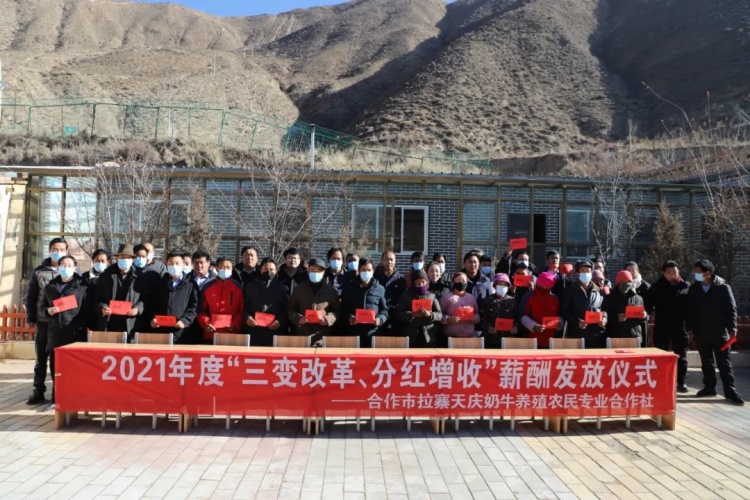 三九严寒风刺骨,乡村振兴暖人心。1月5日,天庆香拉奶牛场2021年“三变改革、分红增收”薪酬发放仪式举行,相隔百里的藏地,扶贫扎根的项目,三变改革成果初显,开创了奶牛场增效、村民增收的双赢局面,全村又一年享受到了三变带来的收益和喜悦。