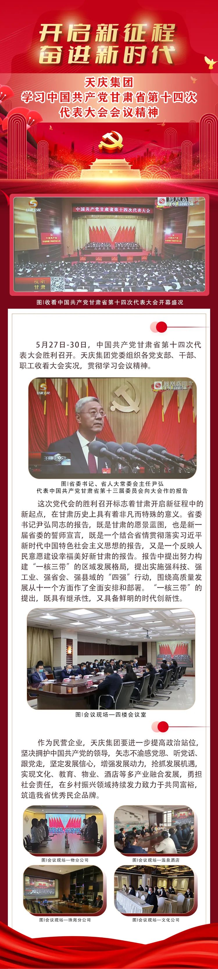 开启新征程 奋进新时代 天庆集团贯彻学习中国共产党甘肃省第十四次代表大会会议精神