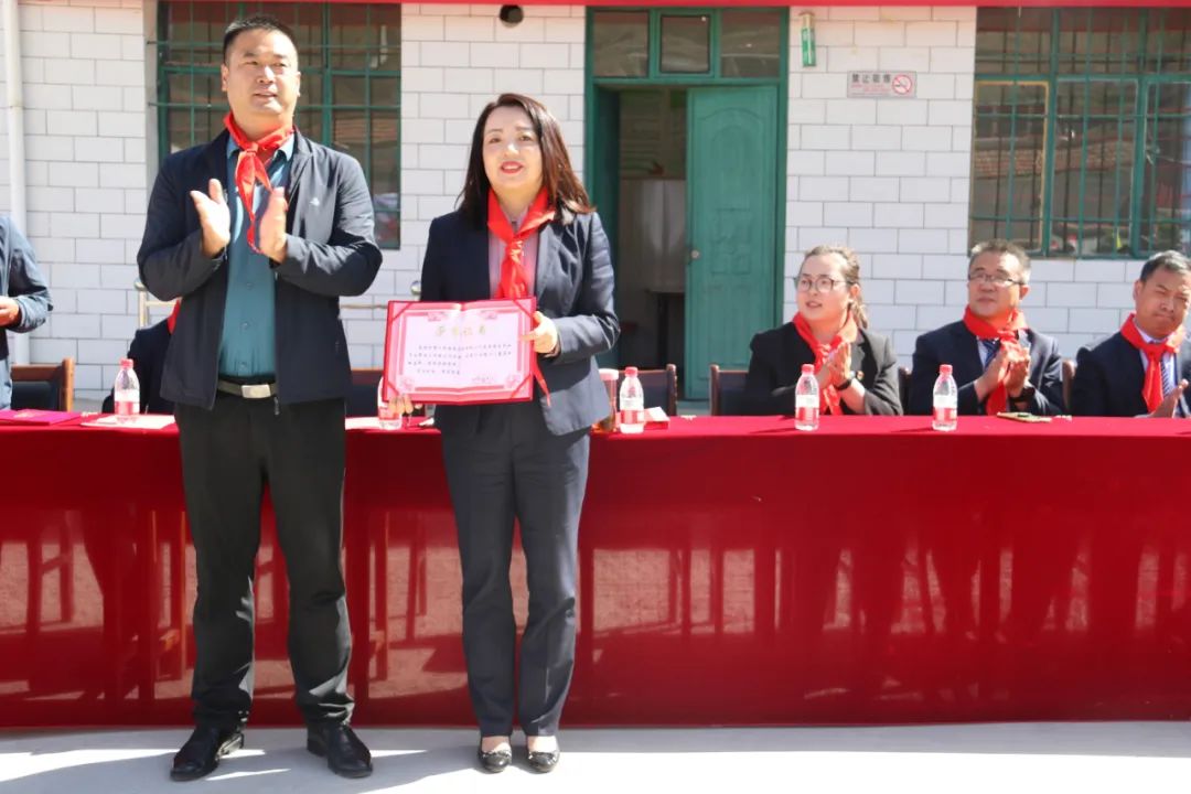 马坡学区冯校长为捐赠单位颁发捐赠证书