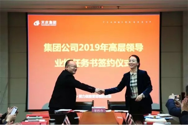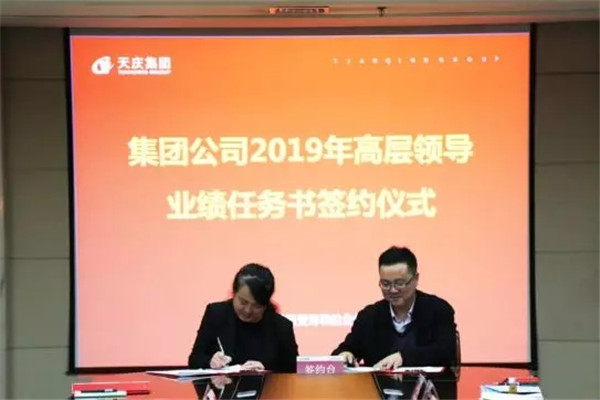 天庆集团总经理韩泽华等领导分别与所管辖业务的高层管理人员还签订了《2019年业绩目标责任书》及《安全生产目标责任书》。会议强调:要把安全生产放在一切工作的首位,各级管理者要高度重视,将安全管理常态化、制度化、规范化,强化意识,落实责任,为企业经营发展保驾护航;为广大天庆业主提供更加安心、舒心、放心的安全居住环境;为全体员工提供更加有序、有效、安全的工作保障,不断推动天庆集团向着更高目标、更高质量健康运营发展。