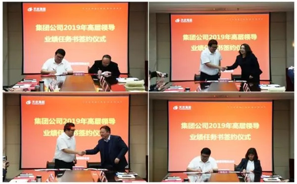 图2 天庆集团总经理韩泽华与集团副总经理李肖霞、朱力玲、陈作琴等分别签订2019年业绩任务书及安全责任书