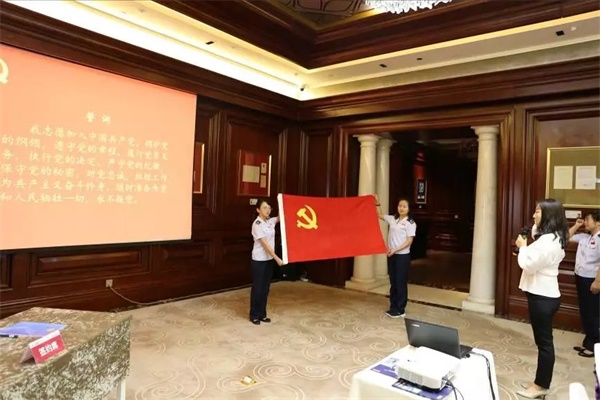 下午15时,主题党日活动在全体党员高唱《国际歌》声中拉开序幕。在甘肃天庆集团兰州天庆公司党支部书记窦瑞琳的带领下,全体党员面对党旗,举起右手庄严宣誓。在重温入党誓词中,每位党员的心灵再一次接受了洗礼,激励党员“不忘初心,牢记使命”,永葆共产党人的政治本色。宣誓完毕后,兰州市税务局机关第一党支部书记尚鹏,甘肃天庆集团兰州天庆公司党支部书记窦瑞琳分别介绍了各自支部情况,交流了党建工作经验。