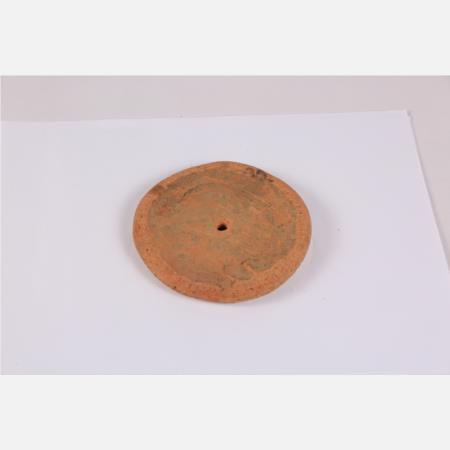 齐家文化扁圆形穿孔陶饰品 直径:5.4cm 距今约4000年-3600年