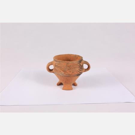 马家窑文化马家窑类型漩涡纹三足双耳彩陶杯直径:9.5cm高:10cm腹围:31.5cm距今约5100年-4650年