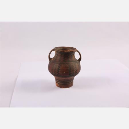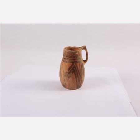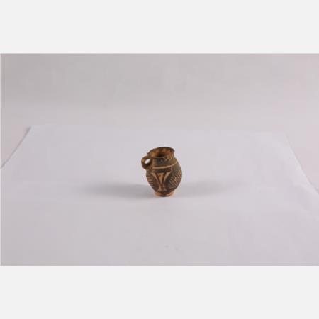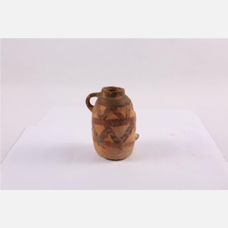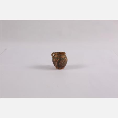 马家窑文化马厂类型圆圈网格纹单耳彩陶罐 直径:4cm 高:6.5cm 距今约4350年-4000年