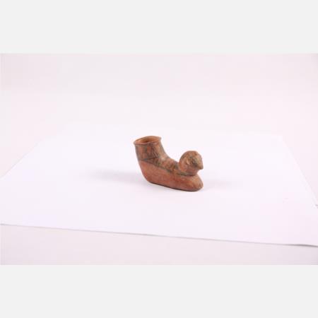 马家窑文化马厂类型靴筒附塑人面彩陶靴型器 高:7.5cm长:9cm 距今约4350年-4000年