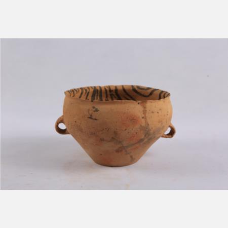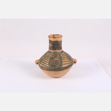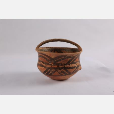 马家窑文化马厂类型折线纹四孔彩陶提梁彩陶罐 直径:14cm 高:9cm 距今约4350年-4000年