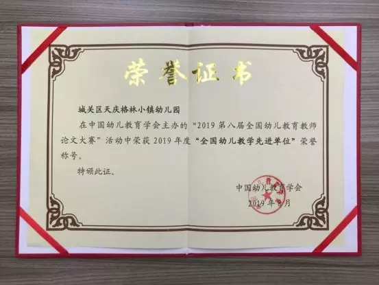 据了解,中国幼儿教育学会为落实教育部《3-6岁儿童学习与发展指南》精神,交流和提高幼儿教育教学理念和方法,自2012年开始,已连续举办七届“中国幼教系统年度评选”活动,经过7多年的发展,“中国幼教系统论文评选”已成长为目前国内幼教领域最重要的国家级论文赛事活动之一,天庆格林小镇幼儿园凭借自身综合实力,获得殊荣。