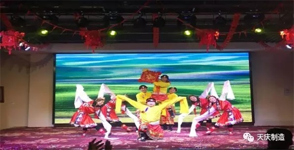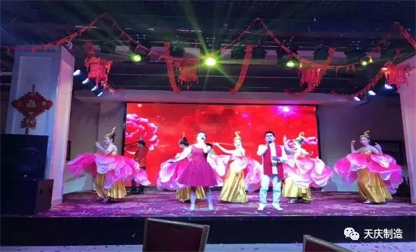 联谊会在各部门的新春拜年短片中拉开了序幕,通过视频短片各部门向公司全体员工及业主送上美好的新春拜年祝福。文艺演出的大幕在天庆嘉园物业服务中心开场歌伴舞《中国美》的歌舞声中正式开启,中高层管理人员合唱的《天庆之歌》更是向一年来集团公司的正确领导和关心关爱及辛勤付出的物业人致以崇高的敬意;莱茵小镇物业服务中心带来的小品《年会节目进行时》引人捧腹大笑;天庆国际新城物业服务中带来的创意节目《夜空中最亮的心》给人耳目一新的视觉感受;格林小镇物业服务中心的诗歌朗诵《致青春诗》表达出为物业工作付出青春年华的奉献者的心声和感受。