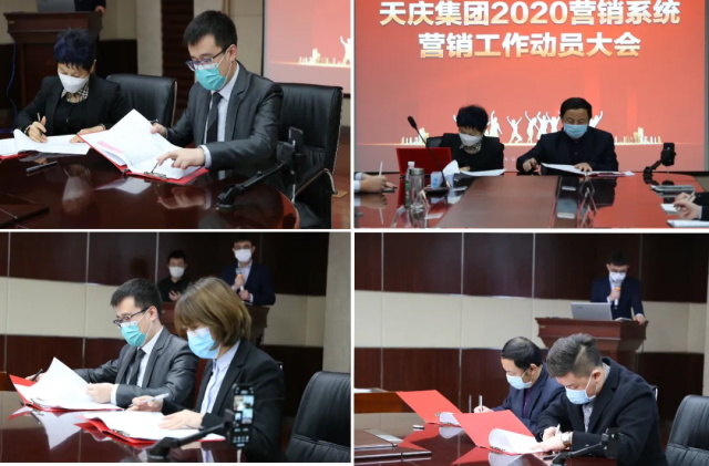 21日上午,天庆集团总经理韩泽华携集团主要高层、房地产分公司主要负责人召开房地产板块营销工作动员会。天庆集团副总经理朱力玲,与天庆集团营销系统高层通过现场签约、视频签约的方式签订目标任务书,随后营销系统高层与营销系统中层管理人员、各项目销售部长签订目标业绩任务书与安全生产目标责任书,进一步统一思想认识,强化工作责任,明确2020年度各项工作目标。