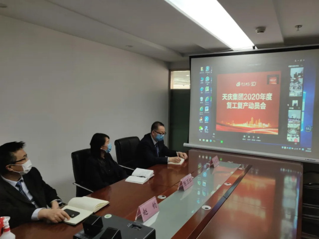 春回大地,万物复苏,在新冠肺炎疫情阻击战取得持续向好的形势下,天庆集团上下拧成一股绳,打响了复工复产突击战。3月21日,天庆集团组织召开2020年复工复产动员会暨高层领导业绩任务书签订仪式,1个主会场、15个分会场在线联动、视频签约,全面吹响复工复产的号角。