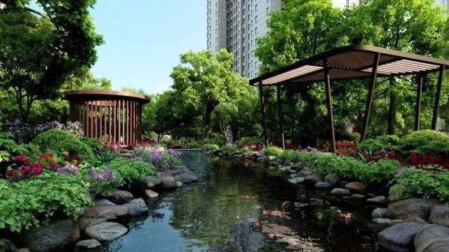 汲取法式园林精髓,匠心打造3.5万平米富氧园林,整体布局有水系、有坡地的高差错落景致。以中心水系为聚焦,景观跌水、庭院依势而建,臻选灌乔木、花树、草坪,四季可观,芳香宜人,构筑现代优雅居境。