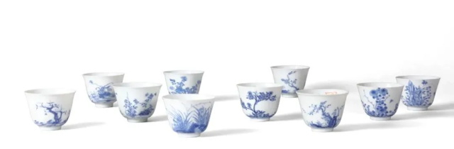 清康熙 青花十二月花神杯(存十只)