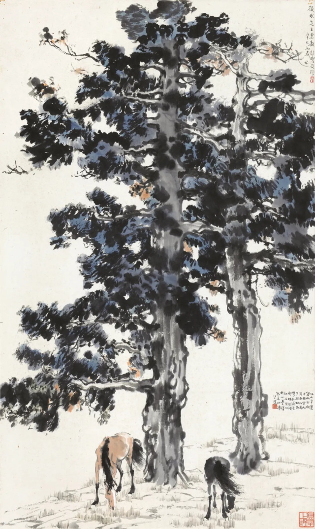 徐悲鸿 古柏双骏