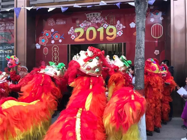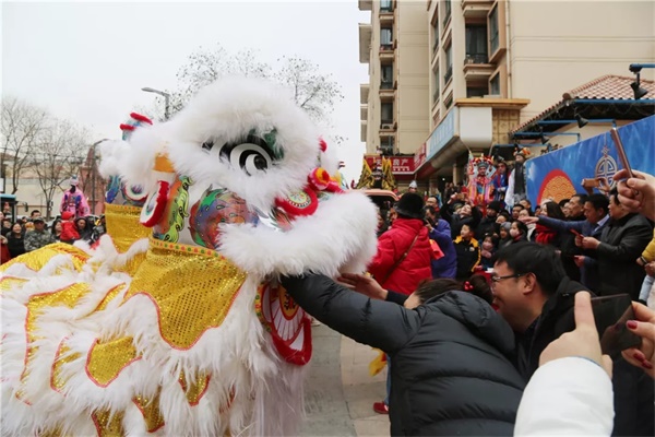 金猪送福、龙腾狮舞。当天上午,身着盛装的社火队进入天庆商务大厦广场,敲响喧天的锣鼓,舞动威武的龙狮,跳起欢快的秧歌。伴随着悦动的旋律,社火拜年拉开整场表演的帷幕,时尚诙谐的欢快舞步,让现场观众笑得前仰后合。