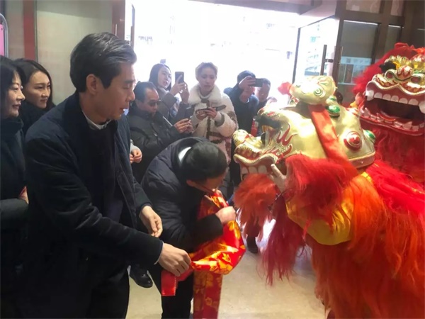彩旗招展,锣鼓喧天,雄狮跳跃,惊天动地的磅礴气势更是将整场表演推向高潮。伴随鸣响的炮竹,天庆集团总经理韩泽华携集团高层为送财雄狮披红挂彩送红包,共同祝愿天庆业主、员工猪年吉祥,天庆集团繁荣昌盛。