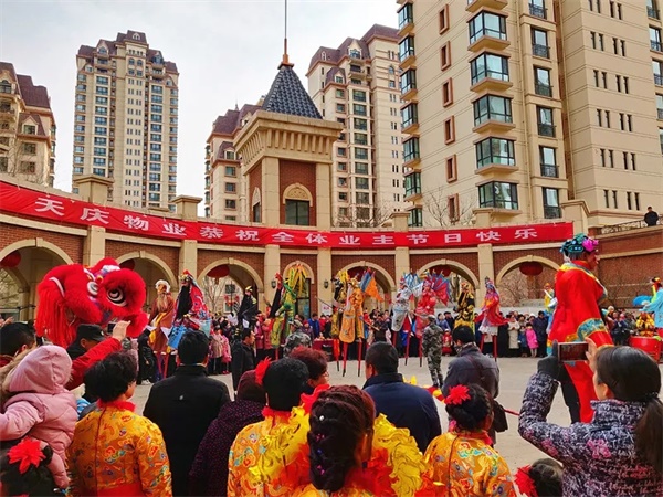 而后,社火队进入天庆嘉园、天庆花园、天庆格林小镇、天庆博物馆、天庆莱茵小镇、天庆丽舍情园等各小区拜年,用精彩的民俗表演为业主送上新春问候。和谐丰富多彩社区生活,叫响天庆业主幸福欢快之声。