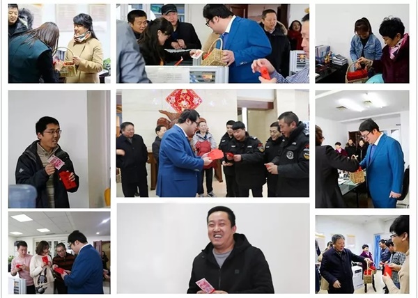 2月17日,节后开工第一天,带着新年的喜气,韩庆董事长、韩泽华总经理等高层领导向大家致以节日问候,总经理韩泽华和集团高层领导亲自为天庆集团的每位职工,送上装满祝福的利是封,祝福大家开工大吉。