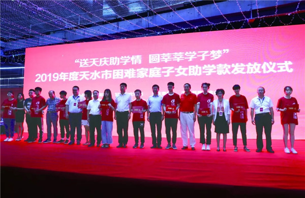 编者按:为献礼中华人民共和国成立70周年,2019年6月-8月,在天庆集团“慈善月”上,天庆集团携爱心,深入甘肃四地,举办6场“送天庆助学情 圆莘莘学子梦”捐资助学活动,开展爱国主义教育并为当地贫困学子送上助学款。