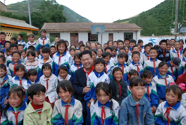 2007年岷县天庆慈爱小学落成 天庆集团董事长韩庆与孩子们合影