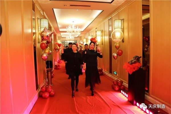 盛典当天,在时尚音乐的烘托与现场来宾热切的期盼下,星光熠熠的红毯仪式正式拉开了年会序幕。参会的全体天庆人,以部门、团队为单位,分别身着华丽的礼服,搭配精致妆容和精美配饰,在镁光灯下闪耀登场,以抖擞昂扬的精神面貌走上红毯,迎接全新的2019年。