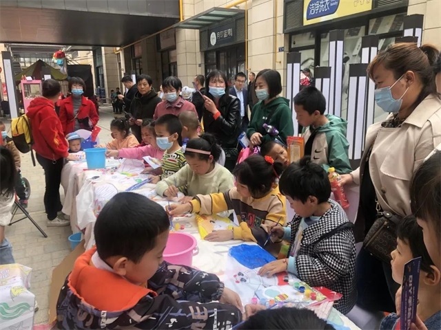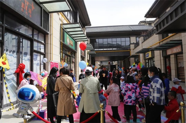 儿童娱乐街上大小朋友玩得不亦乐乎