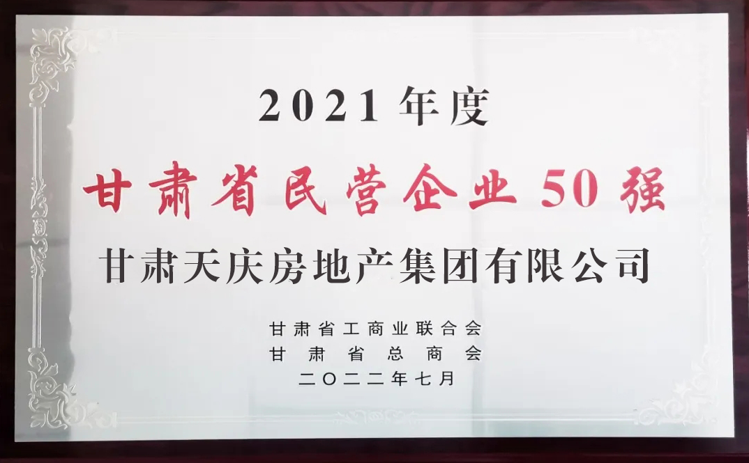 会上,甘肃省工商联发布了2022甘肃省民营企业“50强”榜单,甘肃天庆房地产集团有限公司光荣上榜,位列第9位。