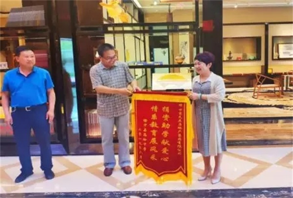研学参观的时间虽然短暂,但是恩玲中学的师生们对天庆博物馆所展示出的优秀的民族文化感到震撼,更对天庆集团多年来勇担社会责任的大义之举表示敬佩,并为天庆集团送上锦旗。