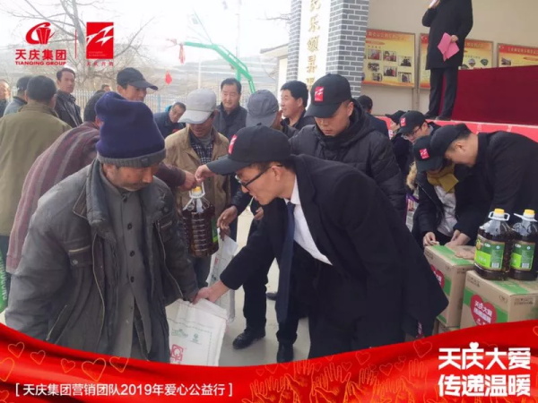 当天下午,在上庄村爱心文明委员会活动基地爱心园广场上,天庆营销管理部向来自上庄村、尖山村、马莲滩、白堡村四个村的54户贫困户,每户捐赠了一袋米、一袋面、一桶油,以解决燃眉之急。对于特困户家庭,还额外捐赠棉被一条,希望在这寒冷的冬天,能为他们抵挡一丝严寒。天庆集团副总经理朱力玲向54户贫困家庭表达了深切的慰问,并亲自发放捐赠物品,接受捐助的家庭,接过物资纷纷连声感谢,对于他们而言,这无异于是雪中送炭,在最需要帮助的时候,他们感受到来自社会的关爱,点燃起了心中的希望。
