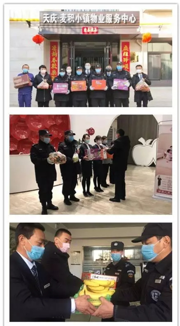 1月31日,天庆集团物业公司高层管理人员分别在兰州、定西、天水三地各项目、各小区服务中心,慰问坚守在物业工作一线的值班员工,感谢他们为防控疫情做出的牺牲与辛勤付出,勉励值班人员尽职尽责,做好特殊情况下的服务保障工作。嘱咐值班员工,在做好各项服务保障工作的同时,一定要重视自身和家人身体健康,希望大家再接再厉,克服困难,完成各项工作任务。