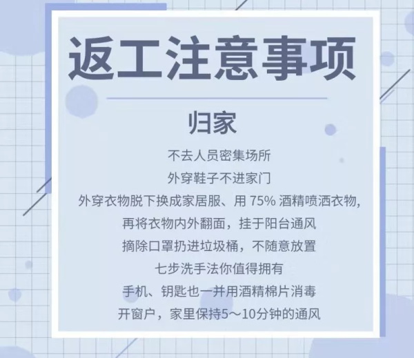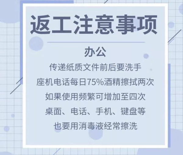 近期,大家将陆续回归工作岗位,然而防控疫情的鏖战正在紧要关头,根据集团公司领导安排部署,营销管理部职能部门及各项目案场防疫手册要求在2月16日前完成,针对如何沟通开会、如何接待客户等事宜的执行及流程做好规定。只有你我共同的努力和参与,朝着一个方向前进,从每个细节处“严防死守”,做好个人及家人的卫生防护,才能建设安全、健康的工作环境。复工时刻,现为伙伴们整理出《天庆集团营销中心防疫行为规范及复工通知安排》,希望伙伴们可以仔细阅读,提前做好准备,为健康防疫打好安全基础。
